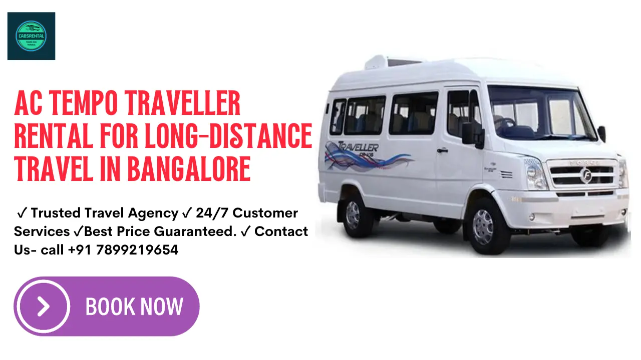 AC Tempo Traveller rental for long-distance travel in Bangalore offer a seamless and comfortable journey for your next trip. With a variety of seating capacities and well-maintained vehicles, our AC Tempo Traveller rental for long-distance travel in Bangalore services are designed to meet your specific travel needs. Whether you’re planning a weekend getaway or a long-distance excursion, our transparent pricing and easy booking process ensure a stress-free experience from start to finish. Experience the convenience and reliability of our tempo traveller rental services, making us the top choice for outstation travel in Bangalore.